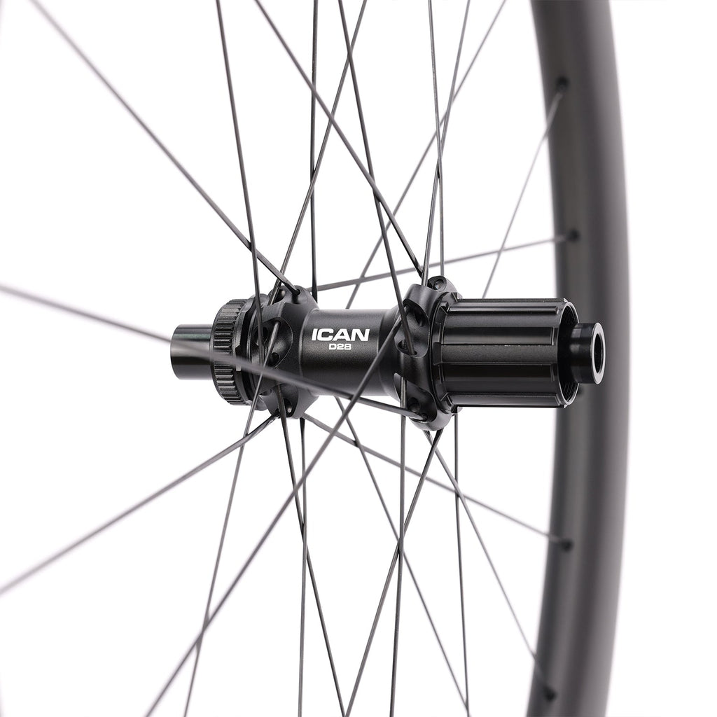 ● Hubs: ICAN D28 hubs with 36T star ratchet system & high quality bearings, Centerlock