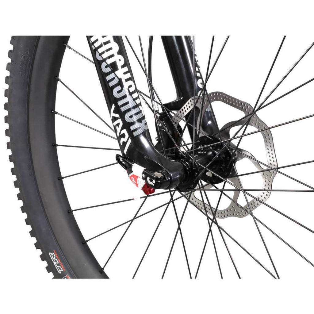 To conquer the worst of terrain we have fitted this frame with a 150mm travel Rock Shox Monarch, which we have buddied up with a 160mm Rock Shox Yari at the front. These shocks work well in conjunction with our 29” Boost carbon fiber wheels. Yeah, we have fitted Boost carbon fiber tubeless ready wheels to our stock bike, we believe in giving you the best.